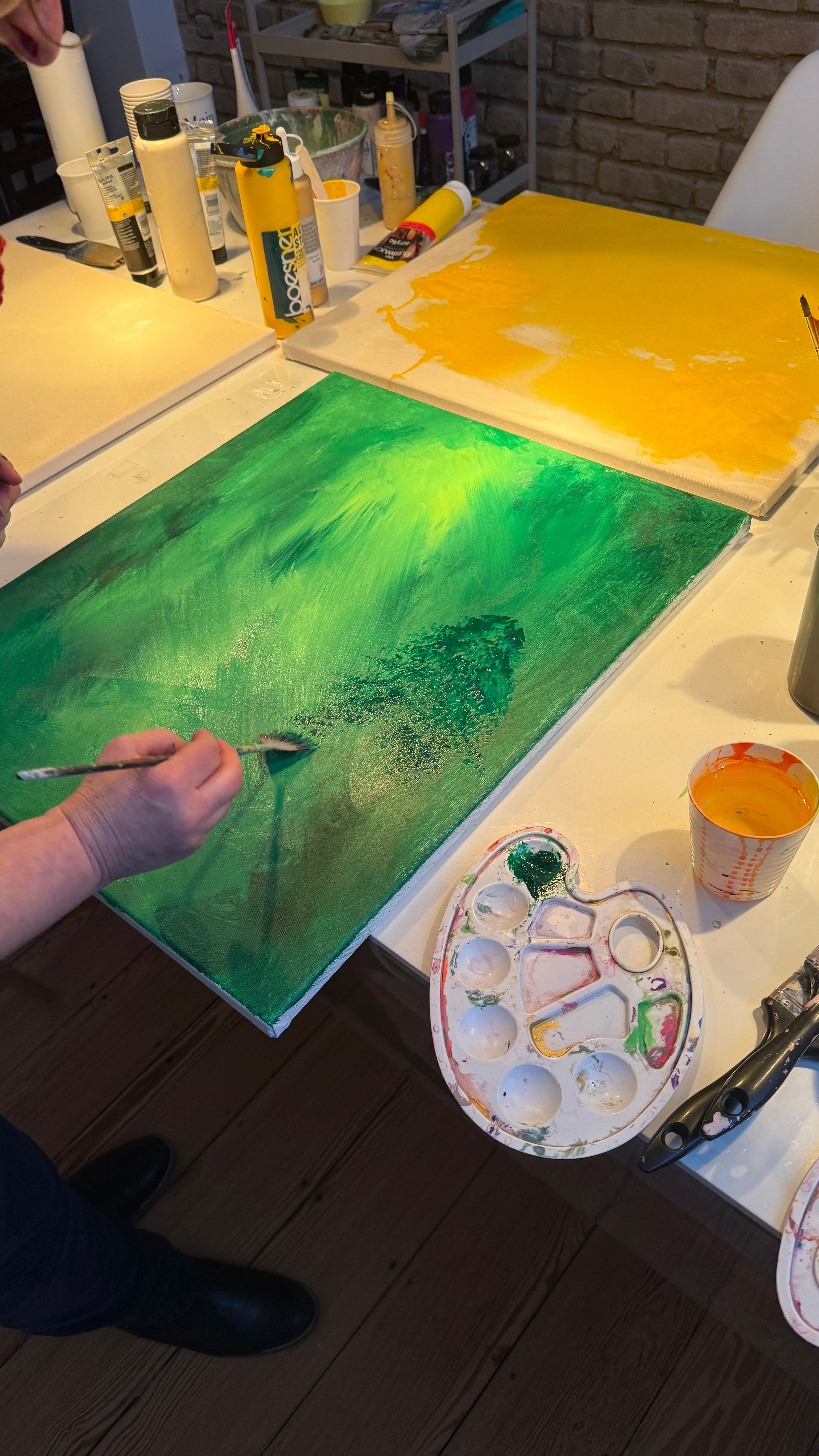 WAS: Achtsamer Kunst-Workshop inklusive aller Materialien (Acrylfarben, Pinsel, Leinwand 50x60cm) im kleinen Kreis von maximal 6 Personen, Körperbasierte Achtsamkeitsübungen zum Start in den kreativen Flow